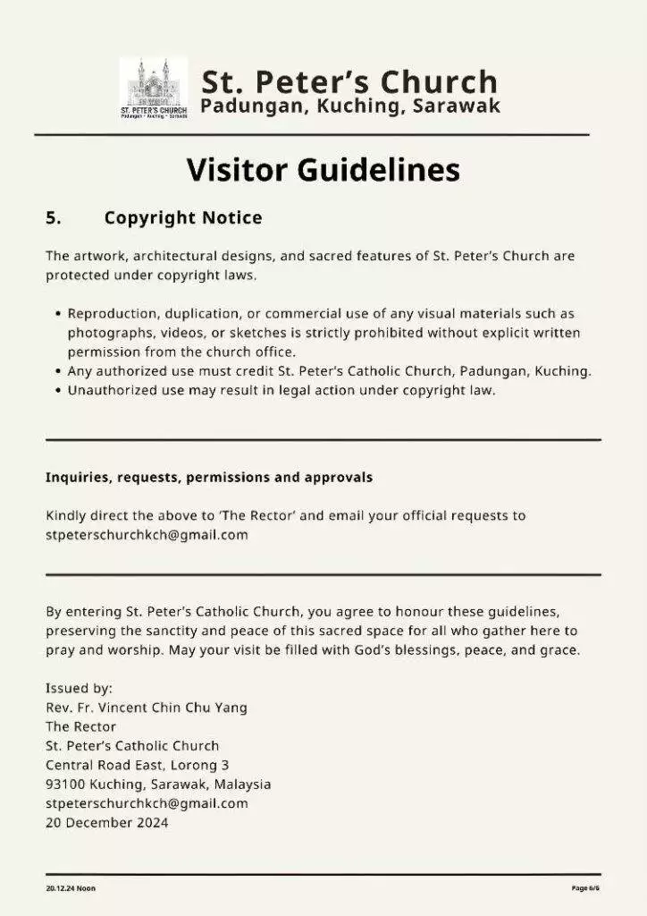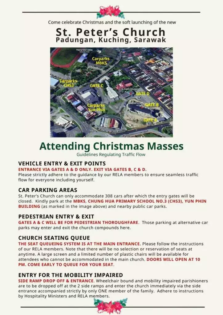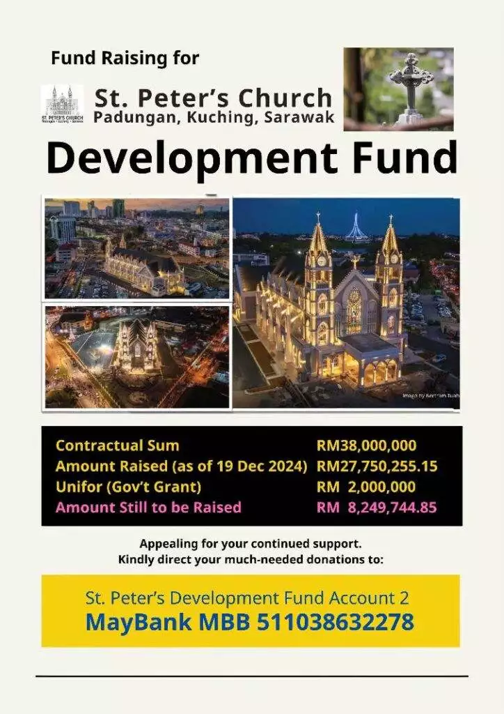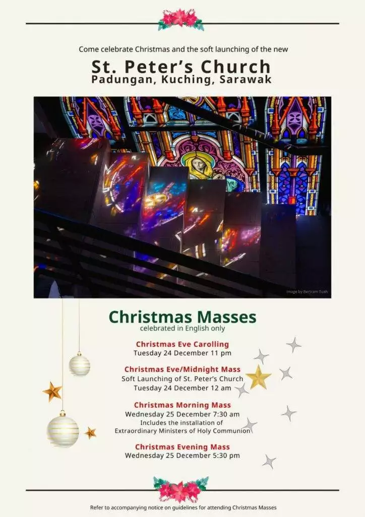 新教堂经过五年的努力与奉献建设完成,已经成为古晋市的新地标,吸引了大批信徒和游客的关注。随着教堂进入软启动阶段,圣诞节成为了这座建筑的首次亮相时刻。在这一重要节日,圣彼得教堂将在12月26日上午9点起向公众开放参观。