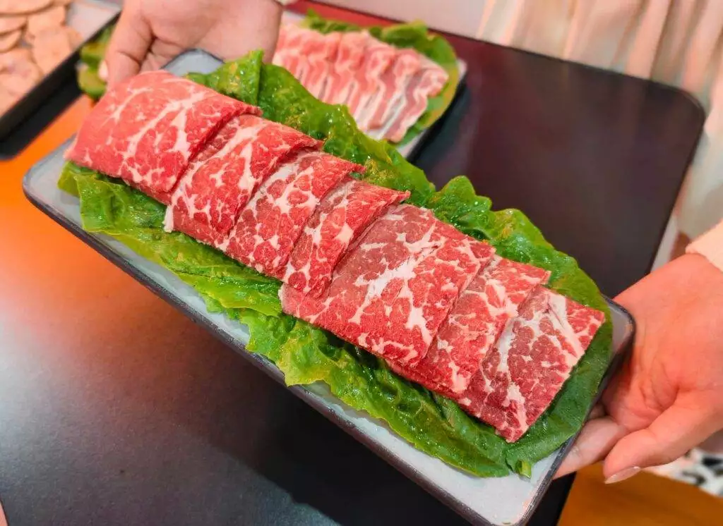 这里的主打特色是精选优质肉类,以“好肉才敢不腌制”为核心理念,致力于为顾客保留肉类的天然风味。所有肉品均坚持新鲜现切,尤其是牛肉,全部从澳大利亚和新西兰进口,品质上乘。牛肉的雪花纹理细腻分明,每一口都能感受到浓郁的奶香油脂,瞬间征服你的味蕾。