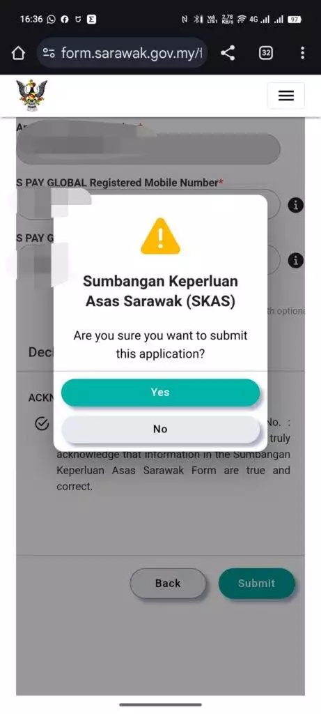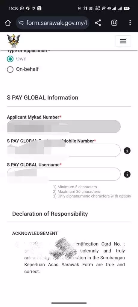首先你需要到点击这里进入Sarawak.gov.my,使用你的Spay Global 账号登录,登录后,输入你要查询的身份证,接着下方有一个update按钮,点击进去,会让你输入你的 Spay global username (Spay Global用户名),输入你的用户名后,点击Submit (要打勾那个acknowledment),弹出一个框框后,点击Yes确认。接着关闭你的Spay Global,重新打开就会看到犀鸟图案了。
