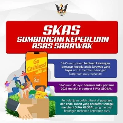 砂政府推出了“砂基本需求援助金计划”SKAS,已在今天1月1日起开放查询及获取详细信息。该计划的主要目的是为符合条件的砂人民提供经济援助,以购买基本食品需求。砂拉越基本需求援助计划(SKAS)是一项为低收入砂拉越人群提供的财政援助项目。通过数字代金券的形式,受惠者可以使用 S PAY GLOBAL 应用程序(电子钱包)购买基本食品物资。