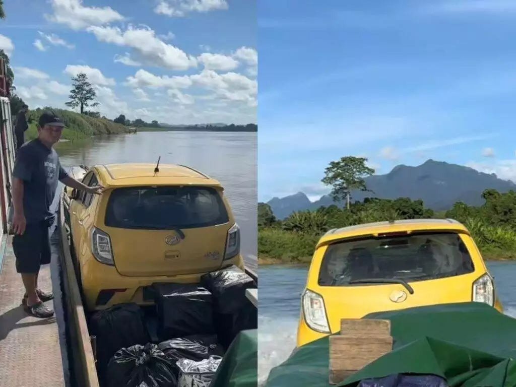一辆Perodua Axia汽车因其独特的返乡方式在社交媒体上引发热议。这辆车的车主为了将其运回位于砂拉越姆鲁的家乡,不惜让车辆搭乘船只,横跨水路返乡。