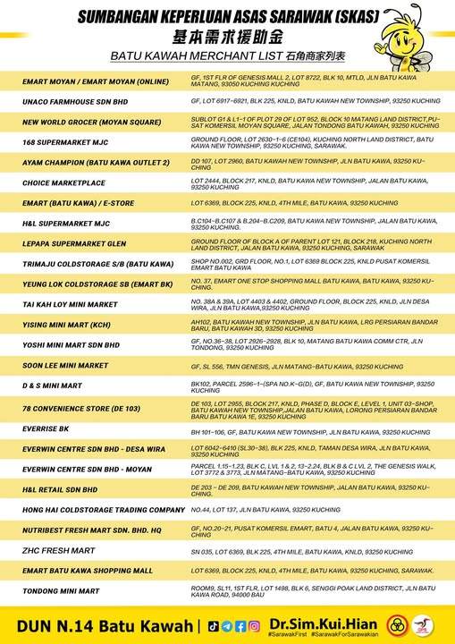 以下是一些已宣布接受SKAS援助金的古晋商家,其余的可以登入Spay Global APP内查询: