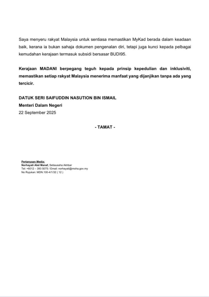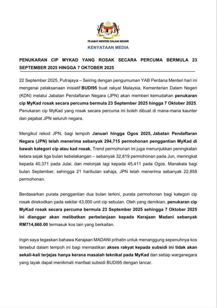 SEO 关键词:MyKad 损坏、MyKad 线上更新、更换 MyKad、砂拉越 身份证、BUDI95 津贴、RON95 补贴、大马卡更换、JPN MyKad