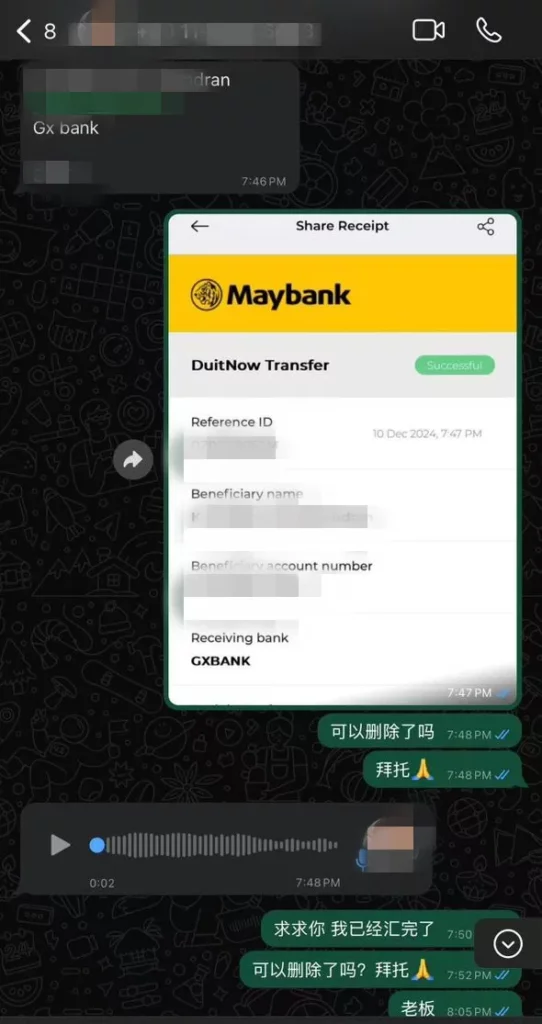 在威胁之下,女子于周二(10日)和周三(11日)两次分别向对方汇款,共7次汇入不同的银行账户和电子钱包。